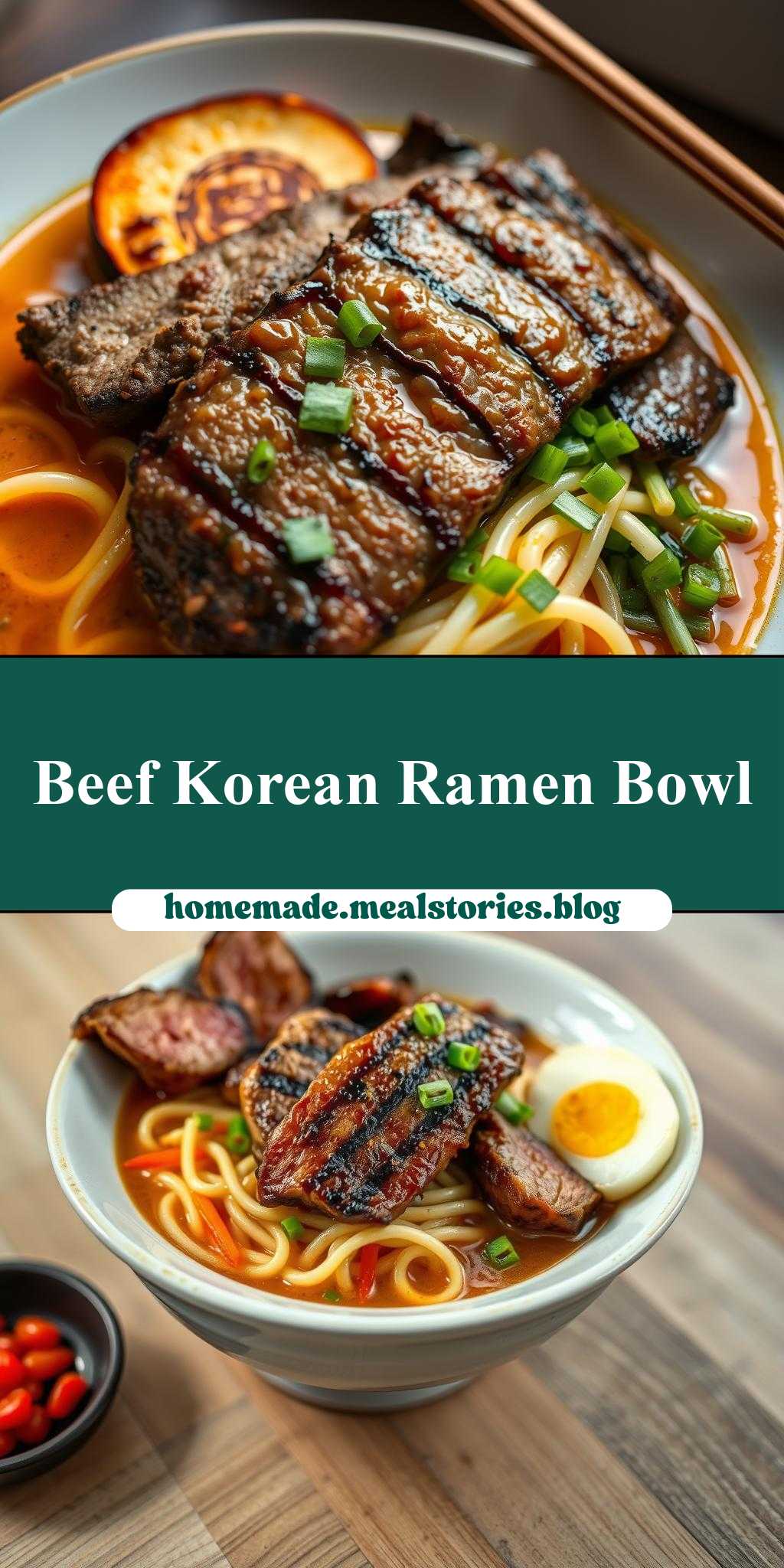 A flavorful and comforting dish combining grilled beef, Korean-inspired ramen broth, and an assortment of vegetables, perfect for special occasions and everyday meals.