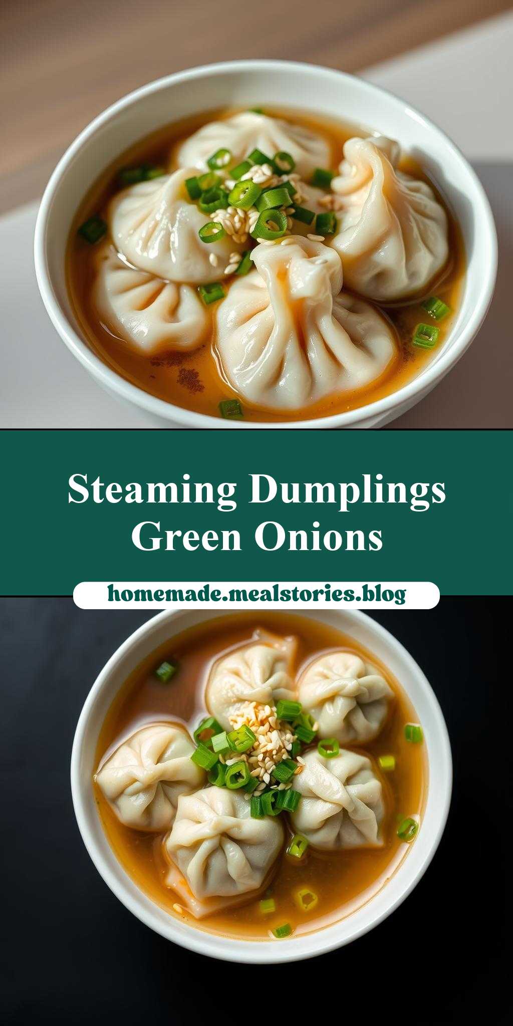 - Step 4: Assemble your dish. Place your cooked dumplings in a bowl, ladle the hot broth over them, sprinkle with chopped green onions, and top with sesame seeds. Serve immediately and enjoy.